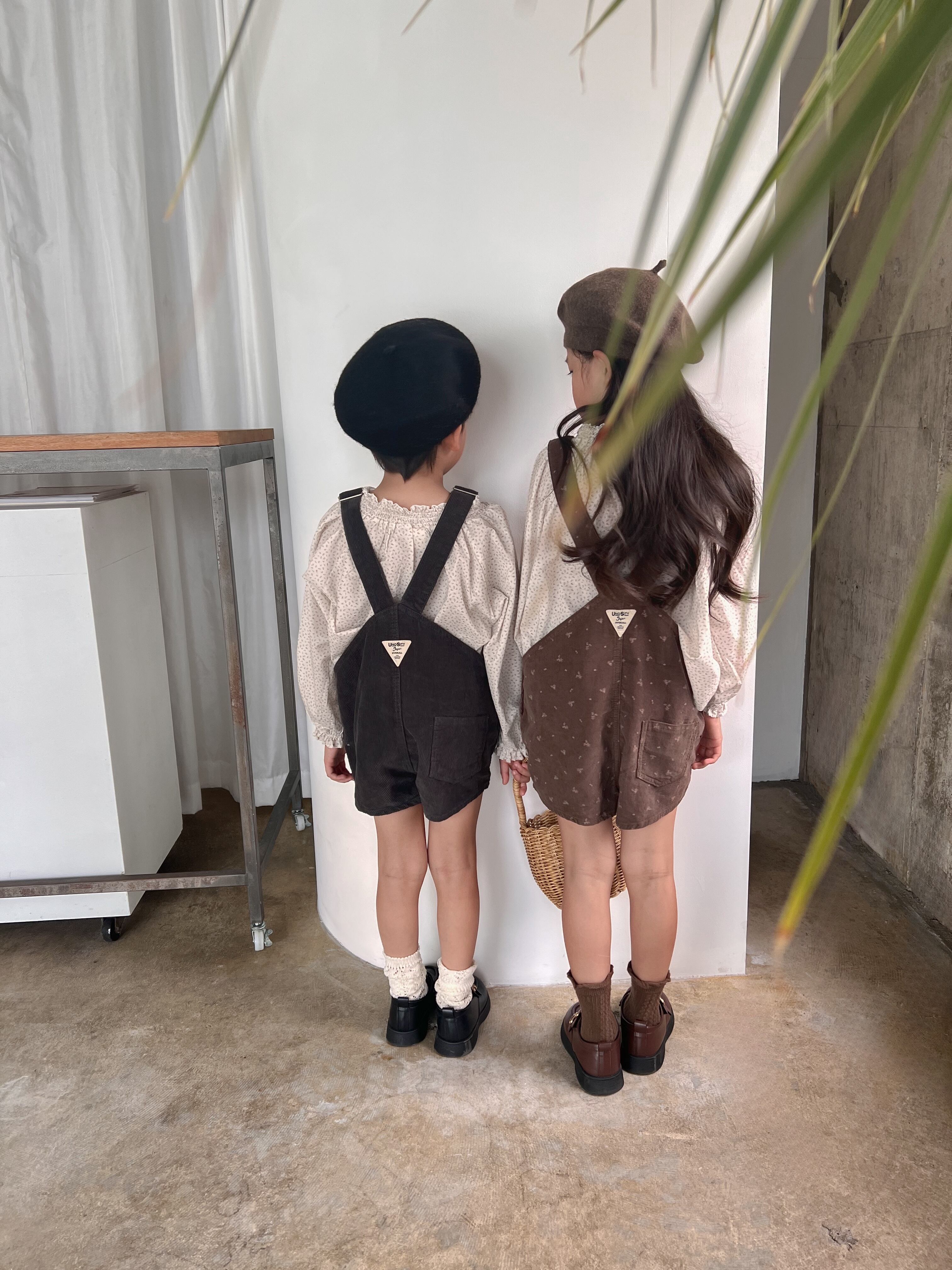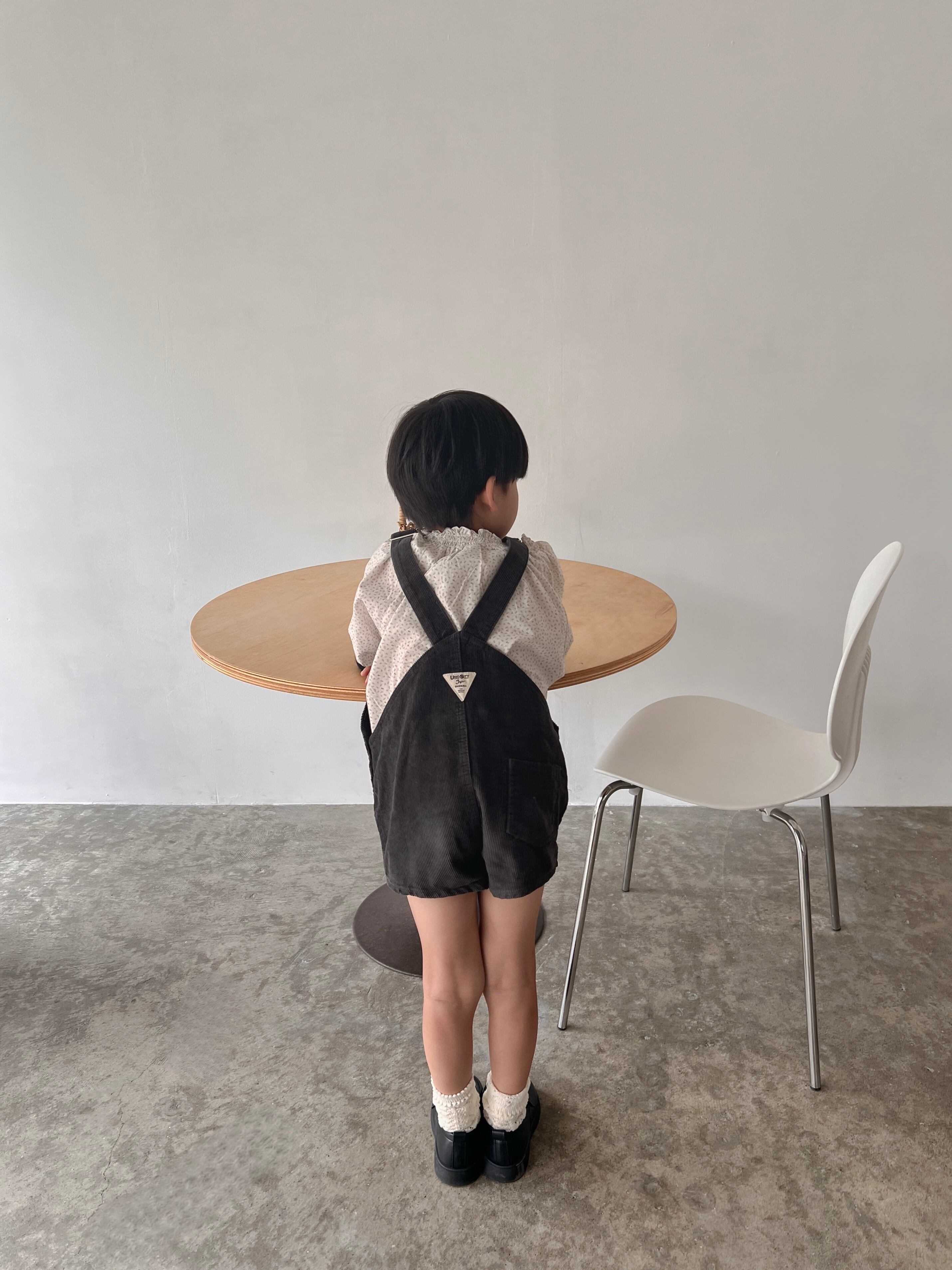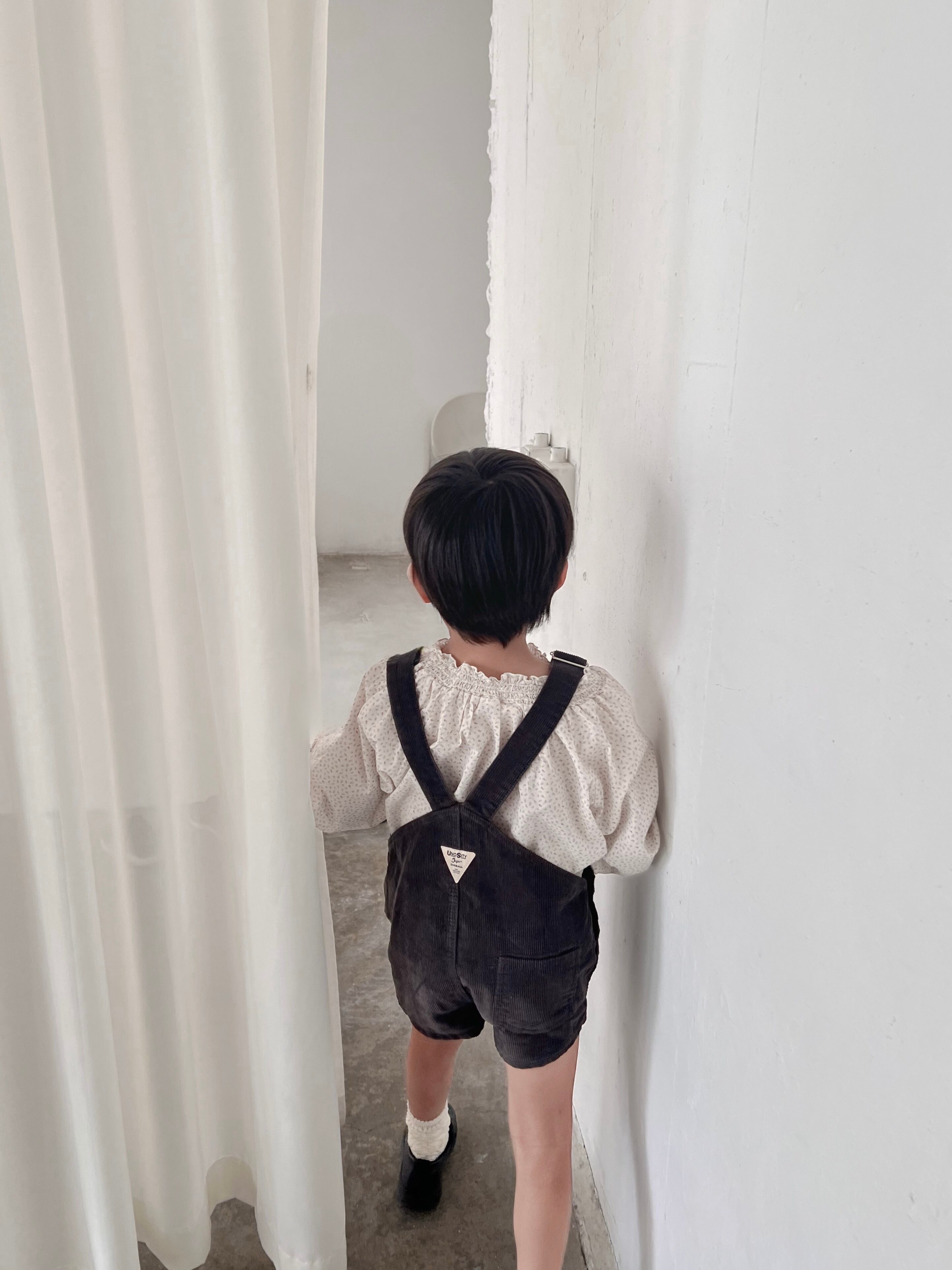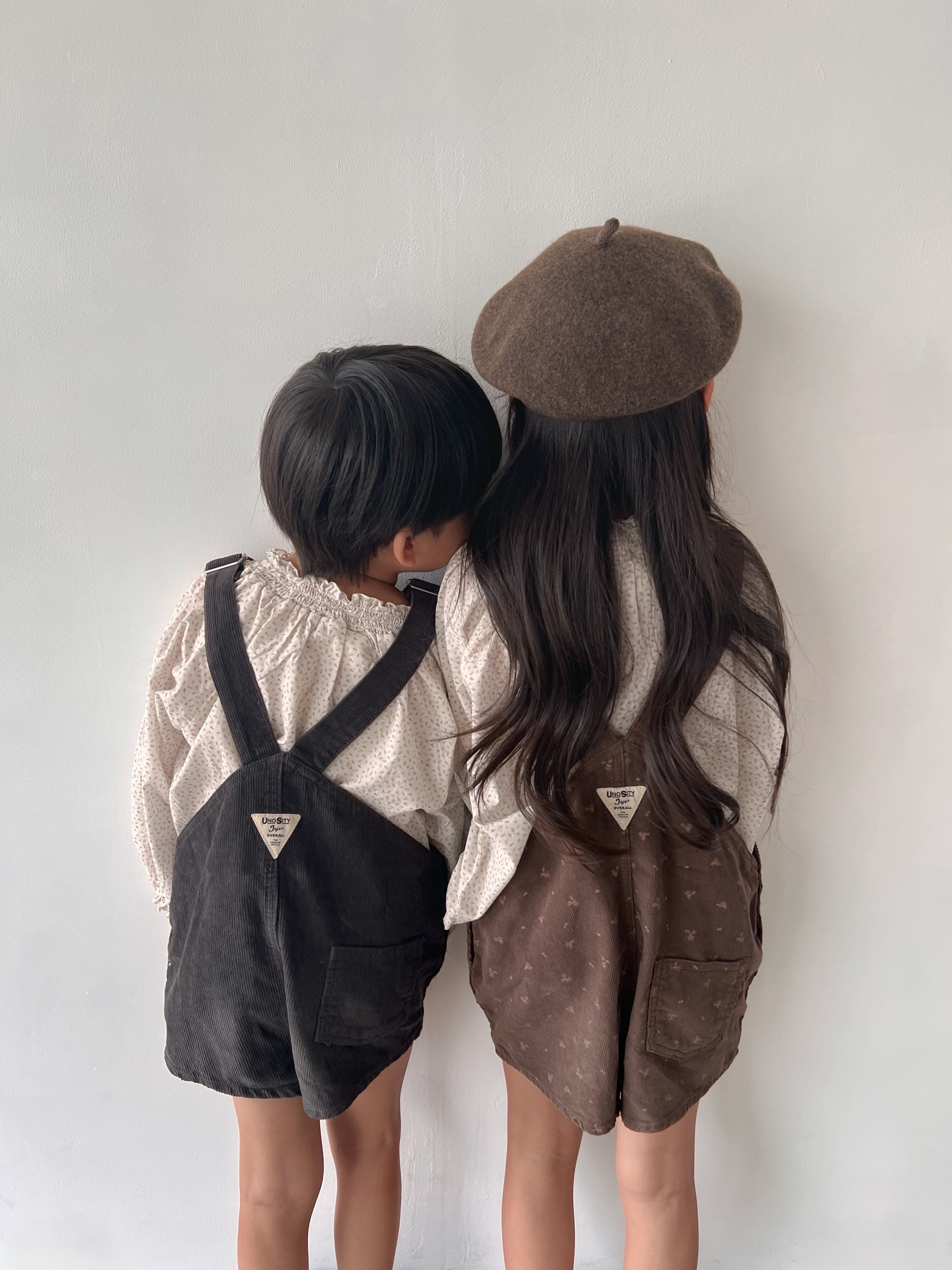 後ろのワッペンも、シルエットも可愛いコードュロイ生地のオーバーオール 。