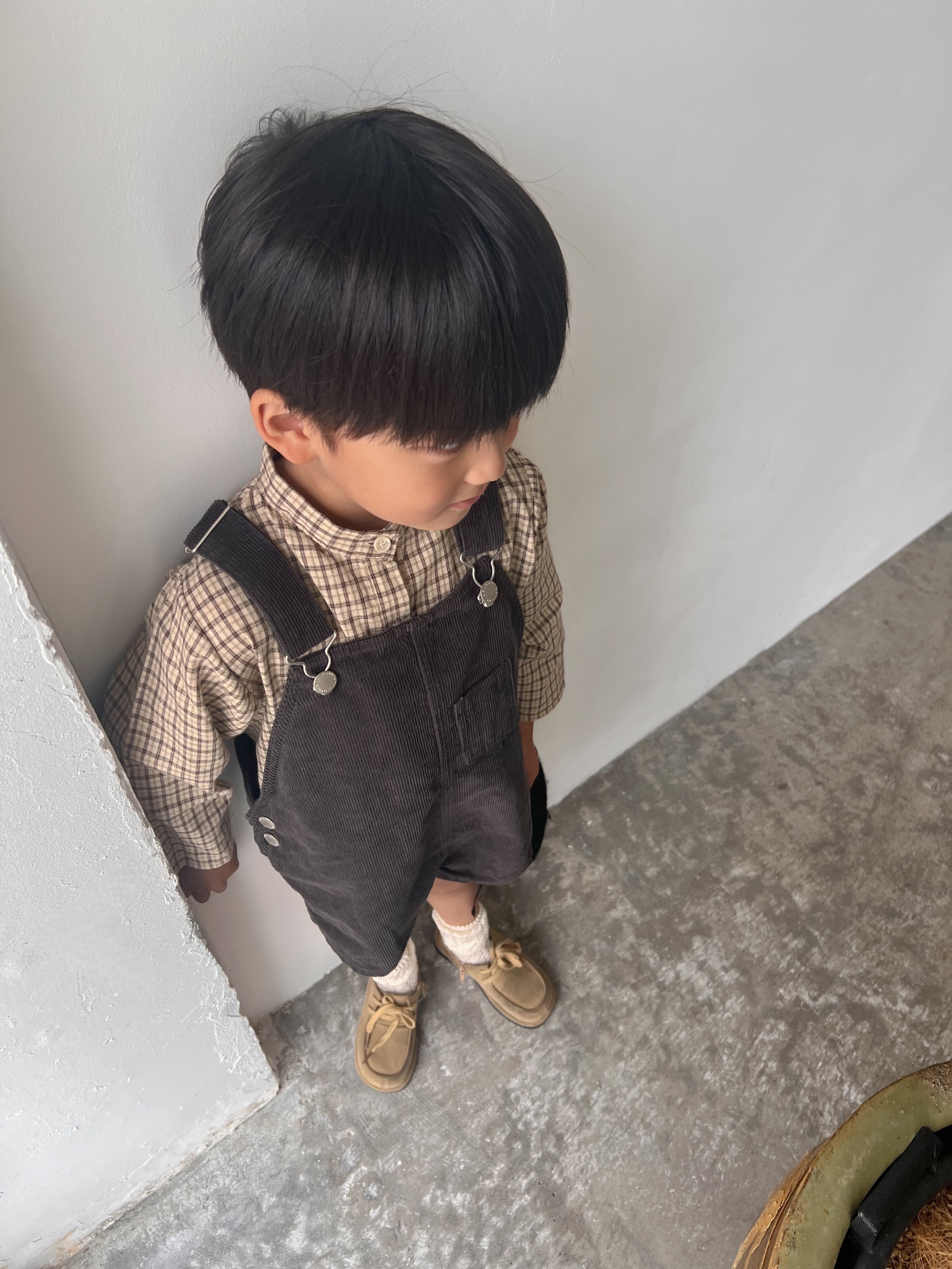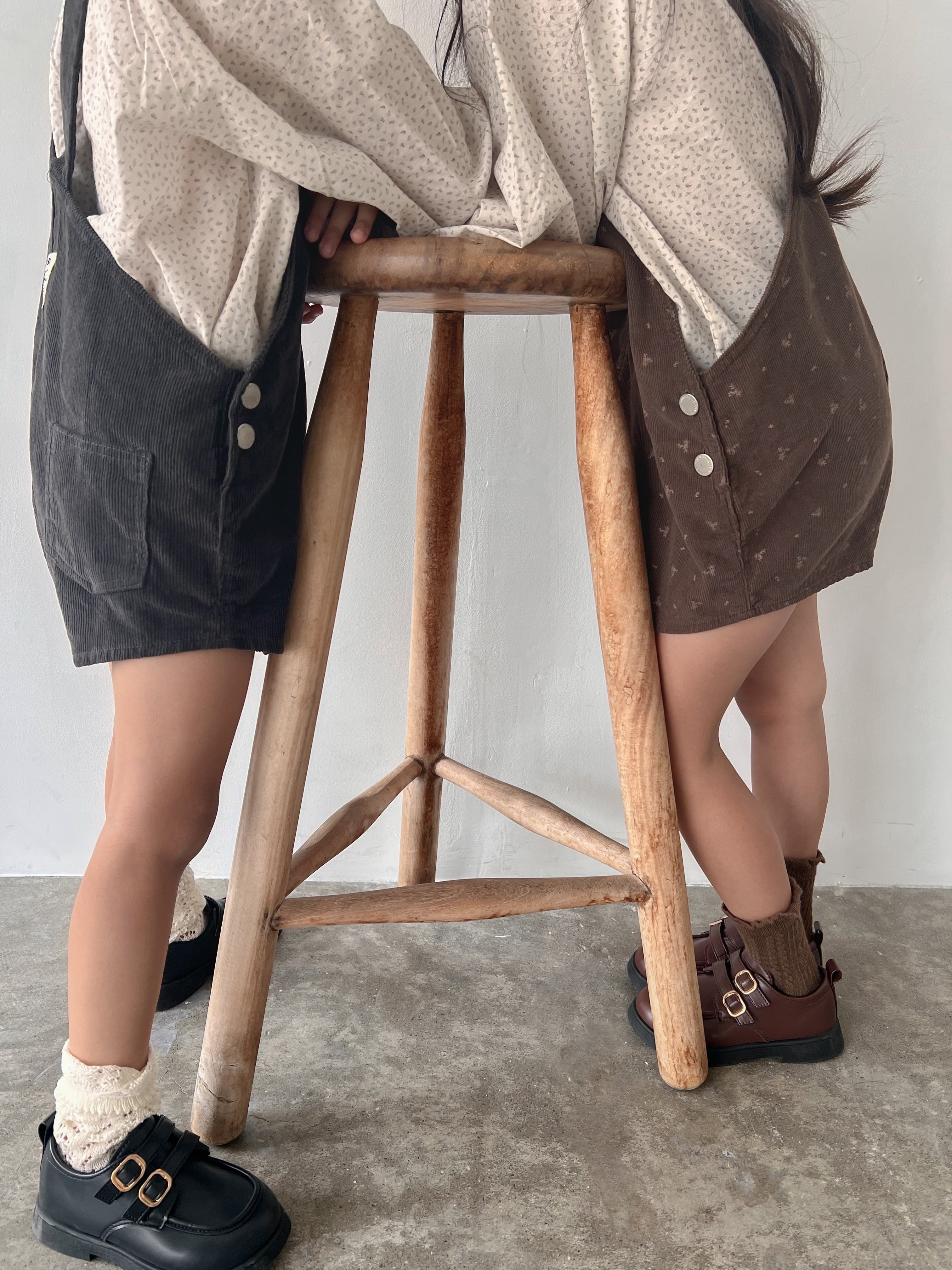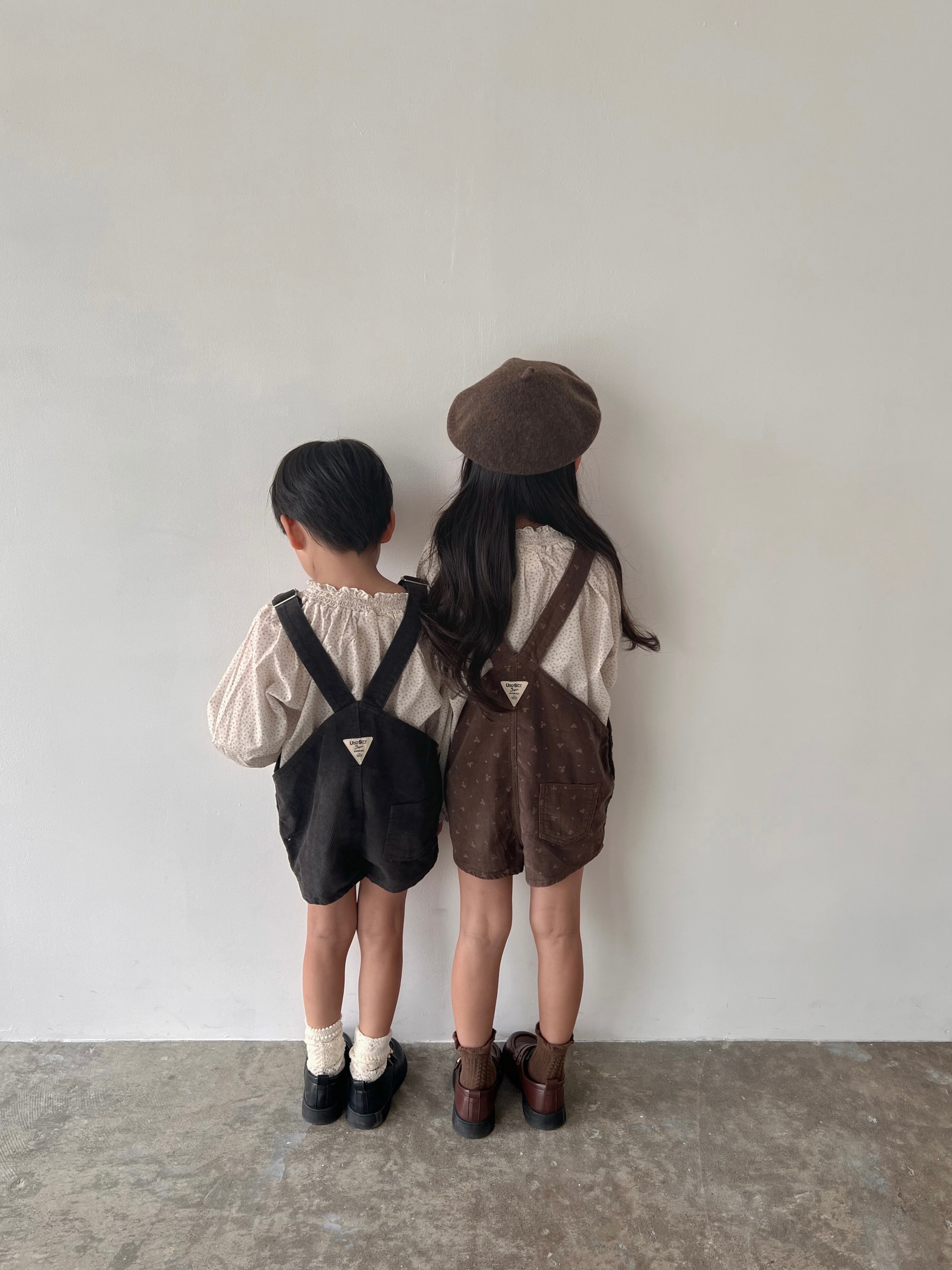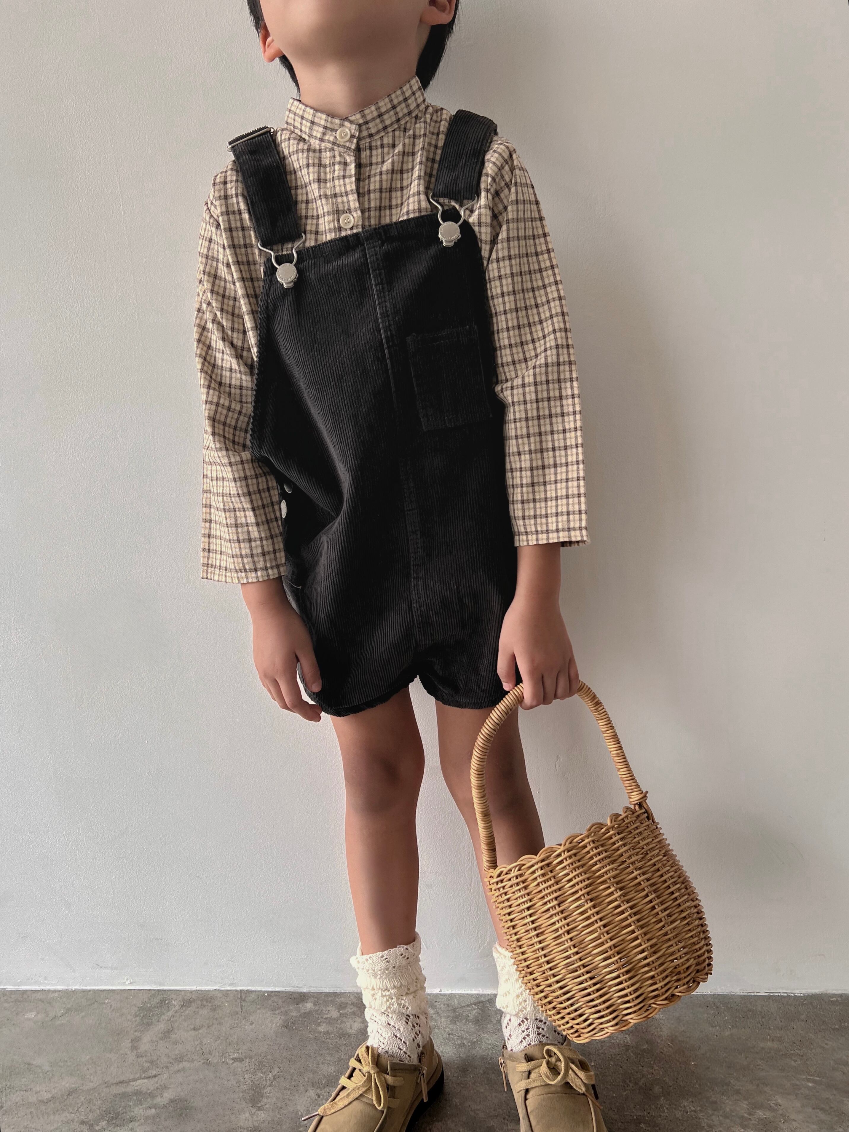 後ろのワッペンも、シルエットも可愛いコードュロイ生地のオーバーオール 。