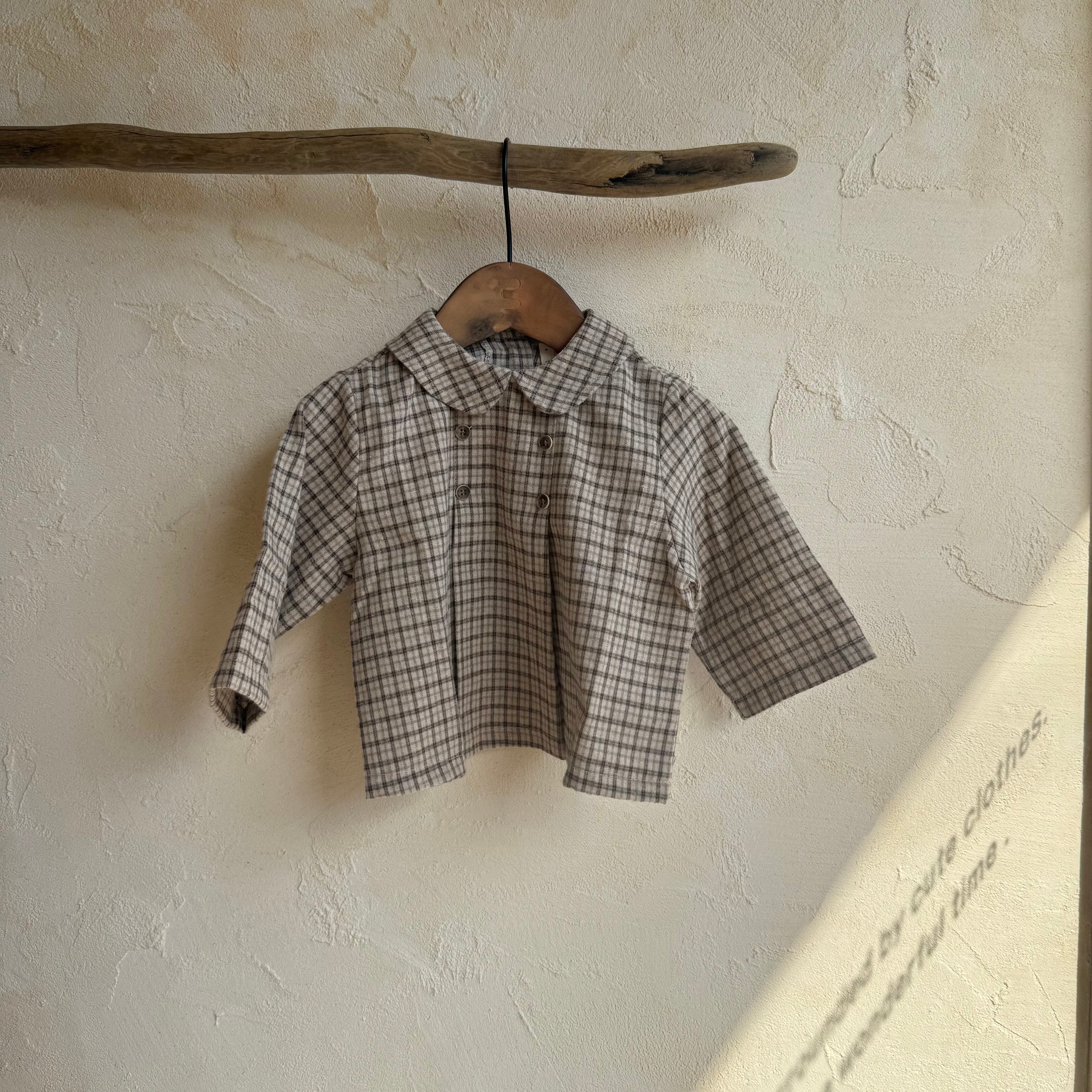 起毛素材を使用したチェック柄の丸襟シャツです。柔らかい手触りと暖かさが魅力の1枚。