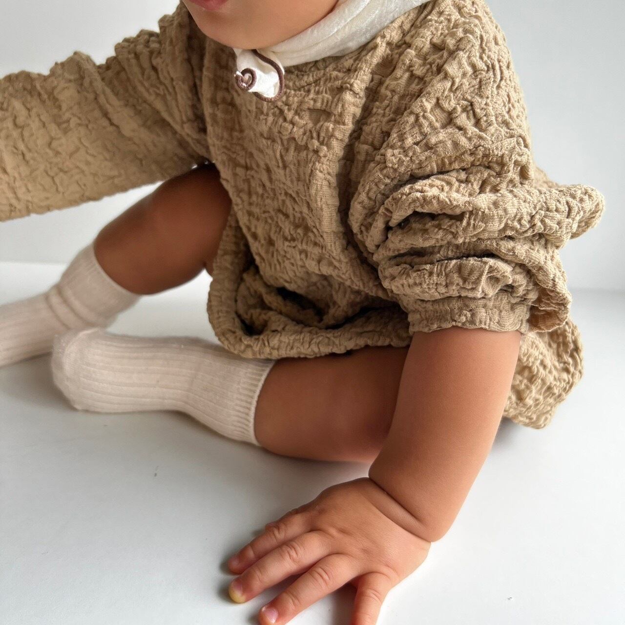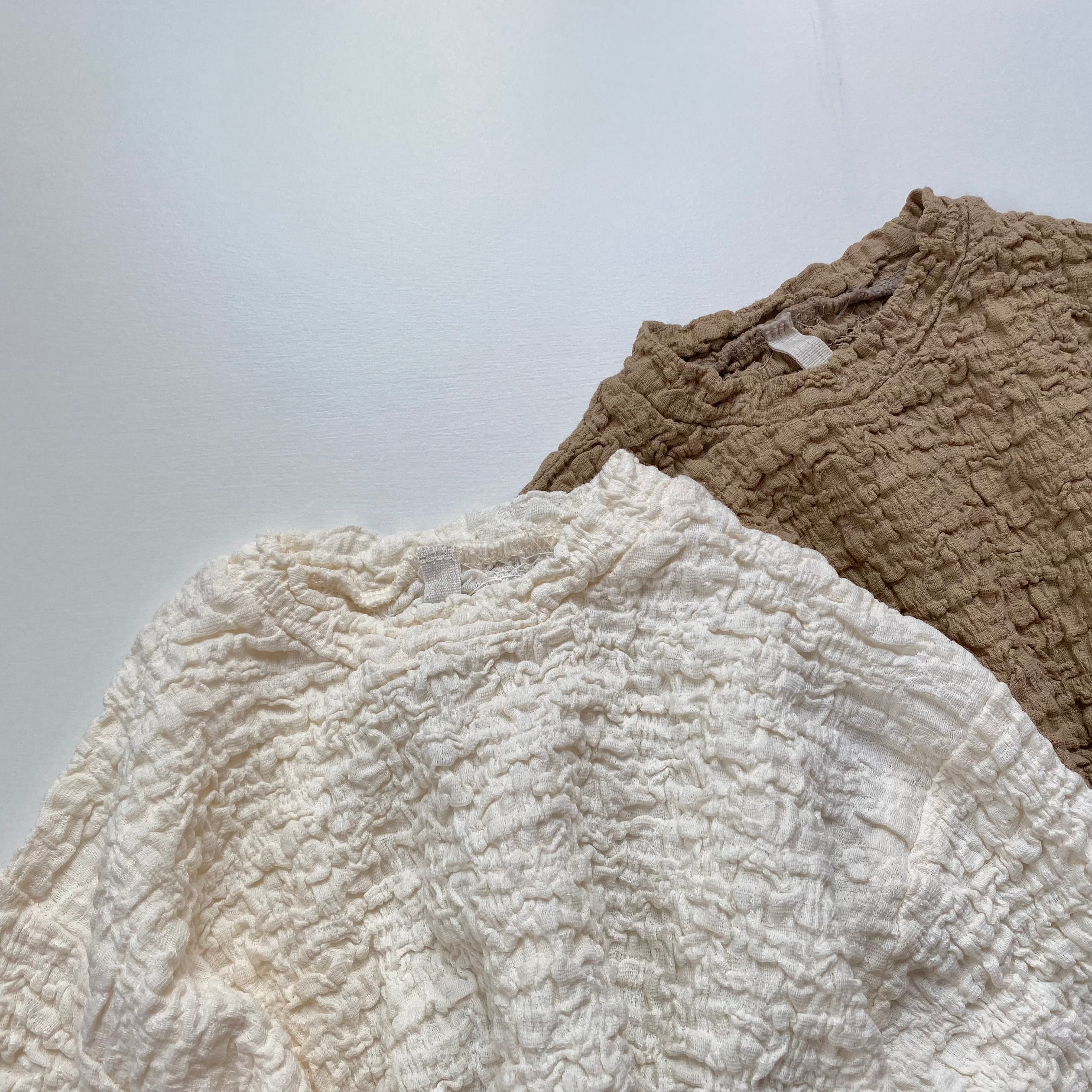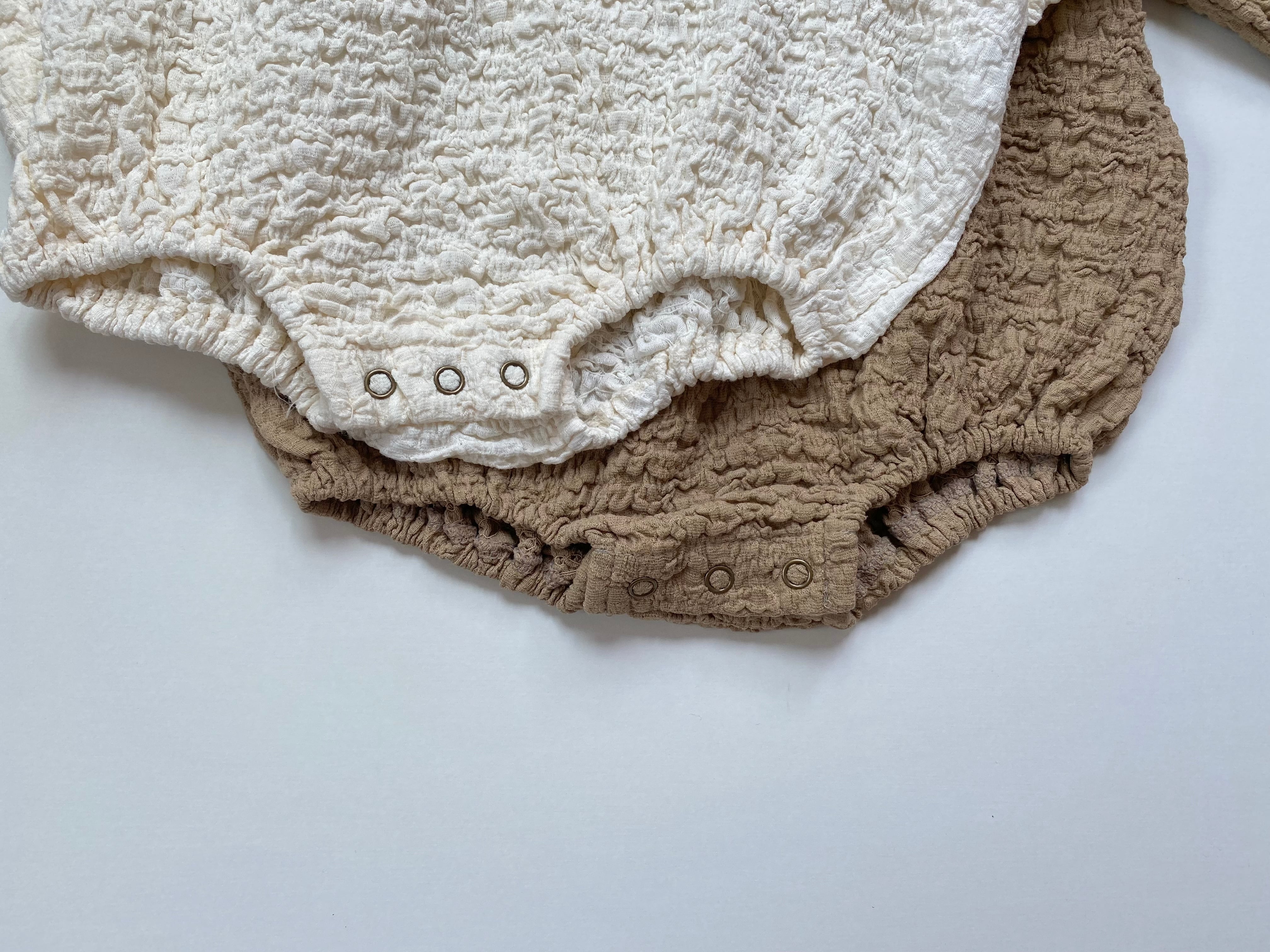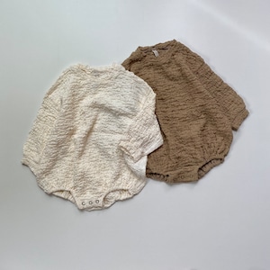 くしゅくしゅした素材のロンパース。