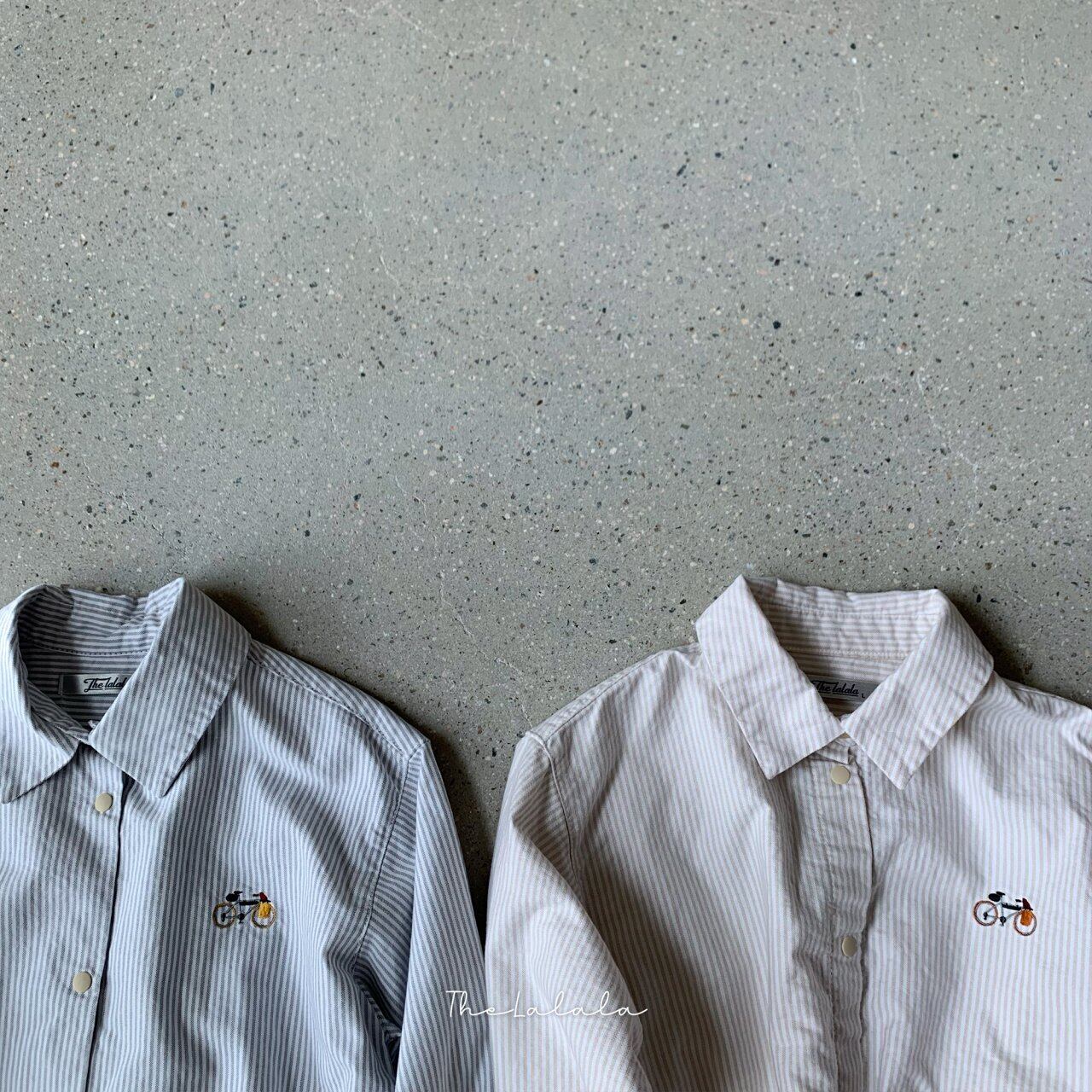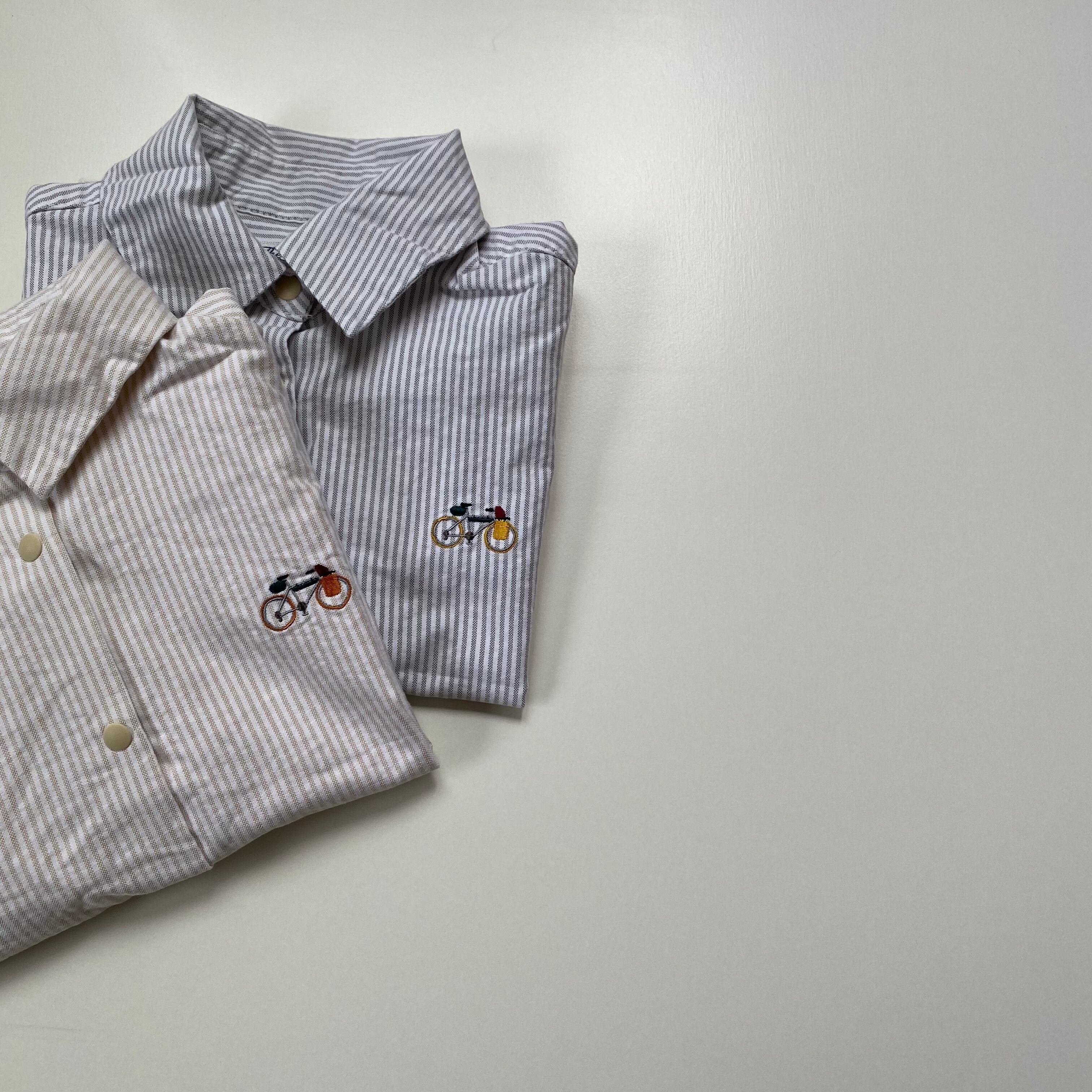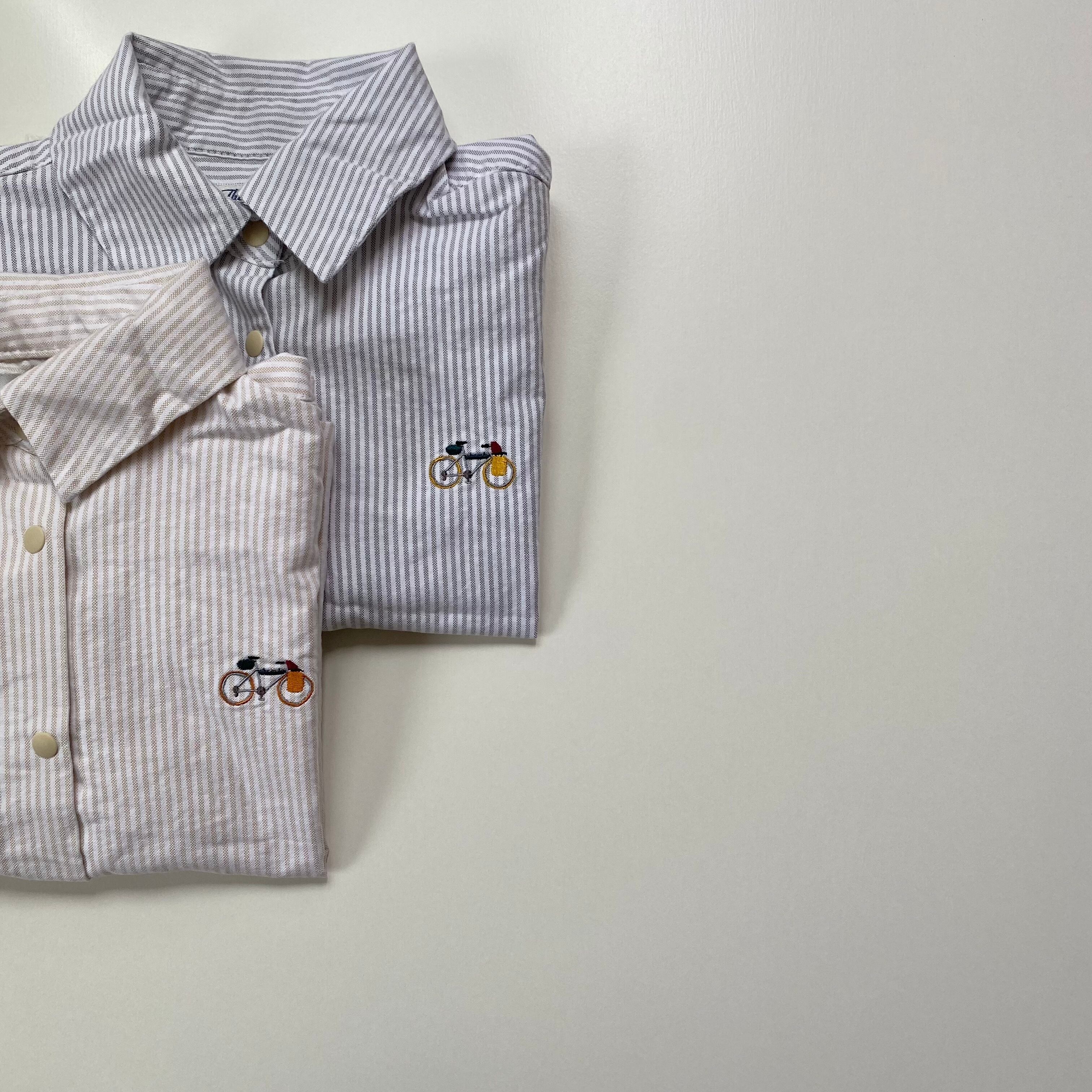 ストライプ柄にさりげない自転車の刺繍デザイン♡