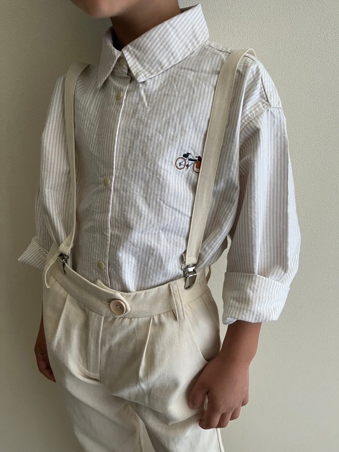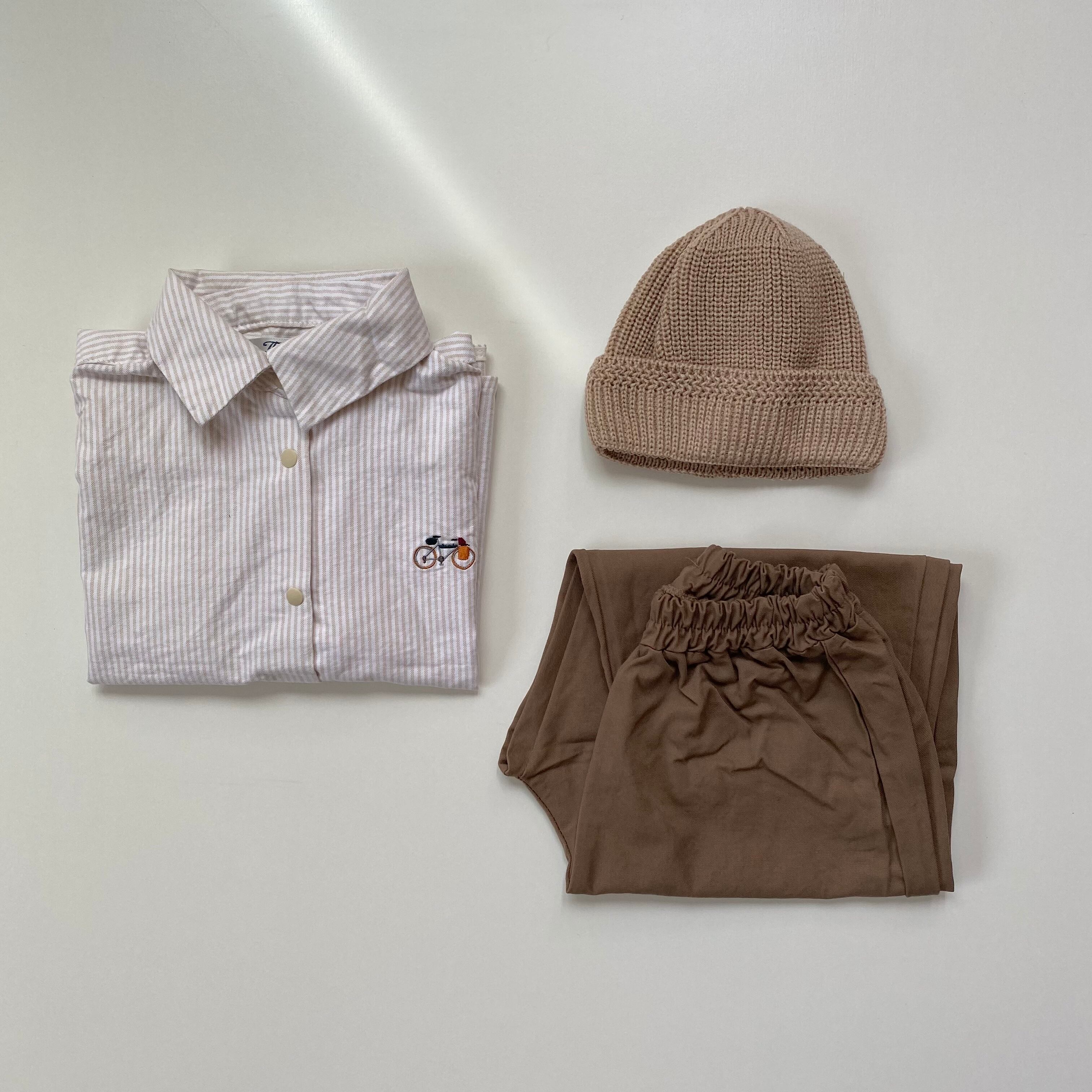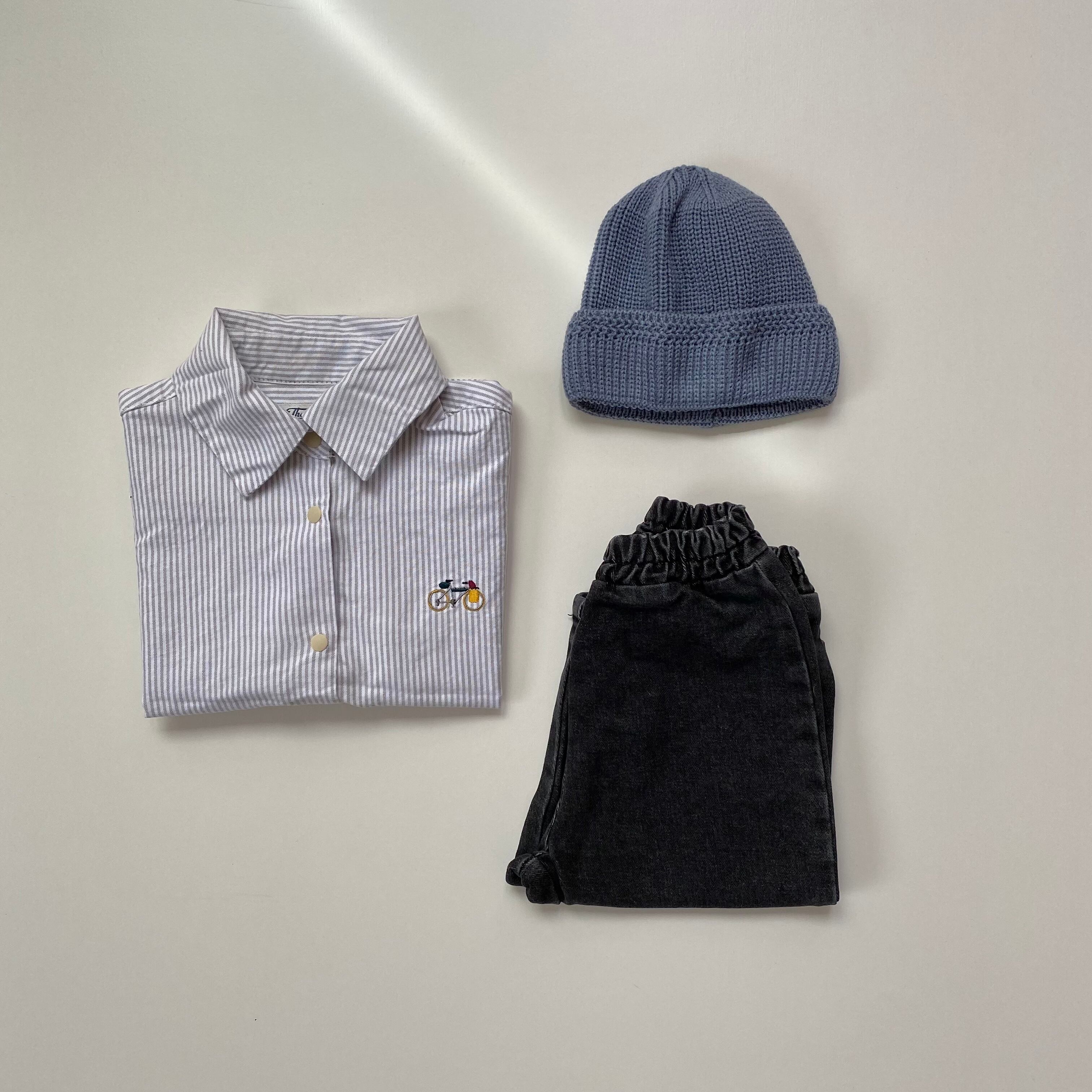 ストライプ柄にさりげない自転車の刺繍デザイン♡
