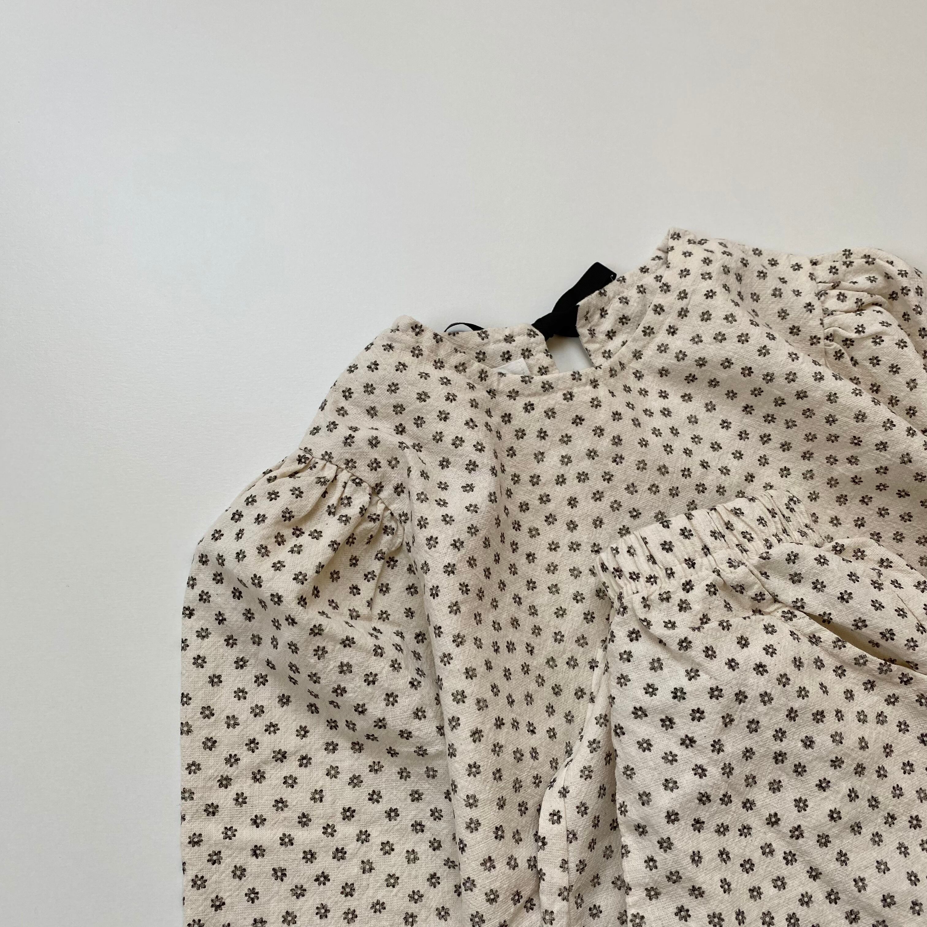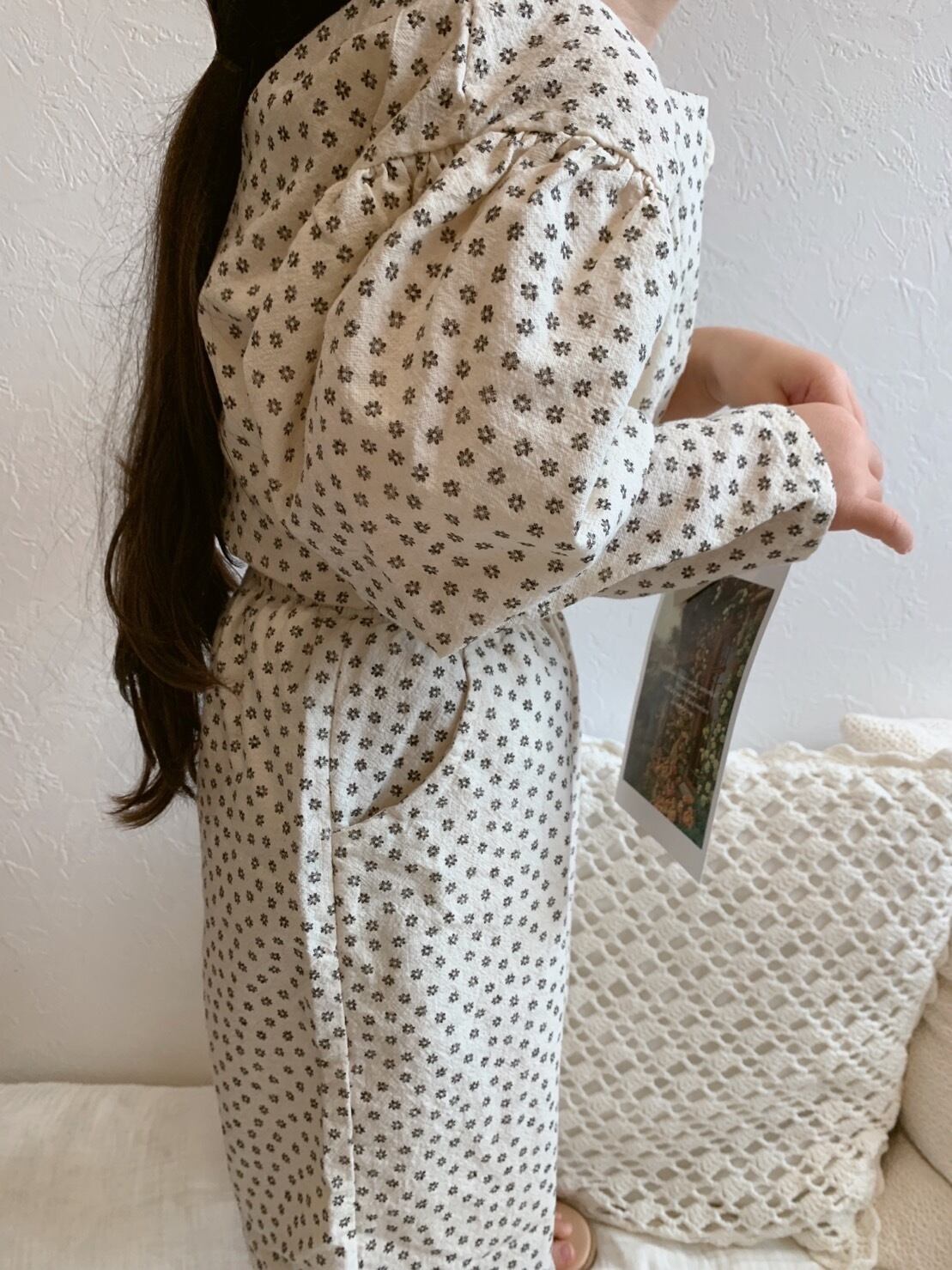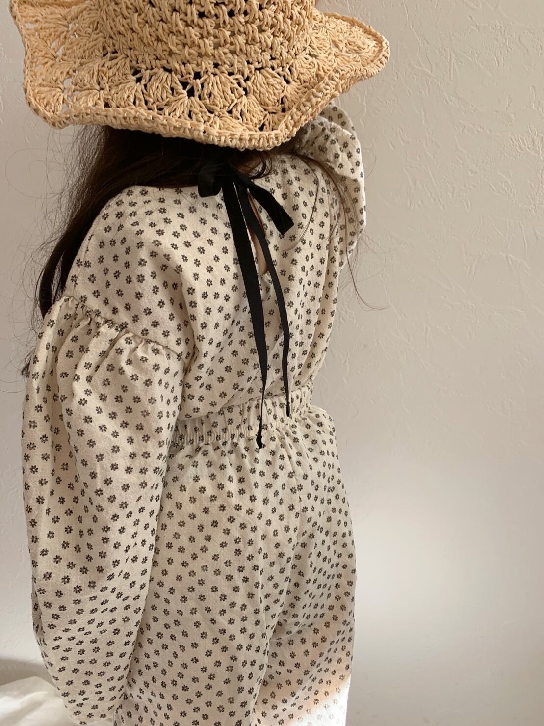 全体的に花柄がデザインされ、後ろのリボンがポイント♡