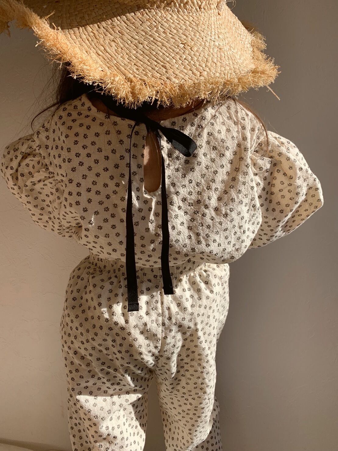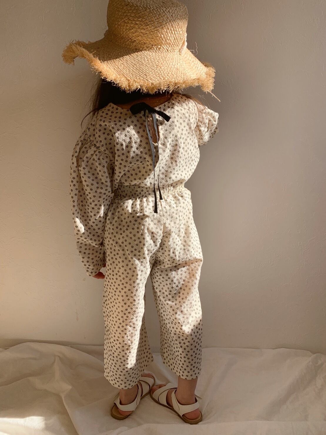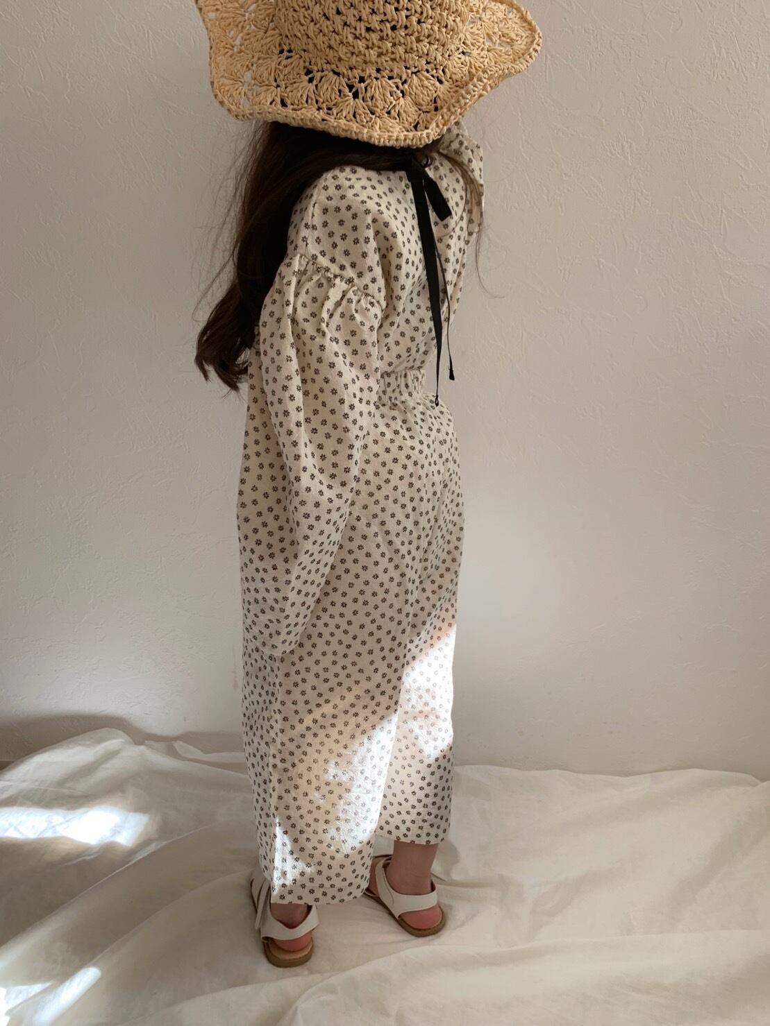 全体的に花柄がデザインされ、後ろのリボンがポイント♡